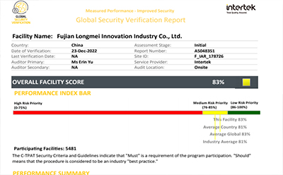 在創思維驗廠網老師專業技術、全程跟進耐心細致輔導以及公司全體員工配合下,一次性順利通過ITS-GSV驗廠,為將來公司發展奠定了良好的發展基礎,既開拓了市場同時也增加了消費者對公司的信賴,在這里再次祝賀福建龍美創新有限公司2023年一次性成功通過ITS-GSV驗廠,同時也期待未來再次與創思維驗廠網合作!