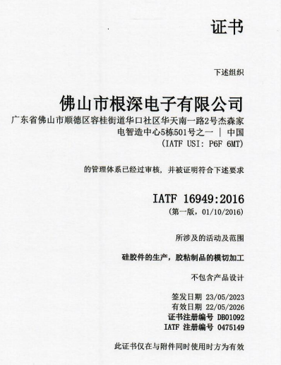 在創思維驗廠網老師專業技術、全程跟進耐心細致輔導以及公司全體員工配合下,一次性順利通過IATF16949認證,為將來公司發展奠定了良好的發展基礎,既開拓了市場同時也增加了消費者對公司的信賴,在這里再次祝賀佛山市根深電子有限公司2023年一次性成功通過IATF16949認證,同時也期待未來再次與創思維驗廠網合作!
