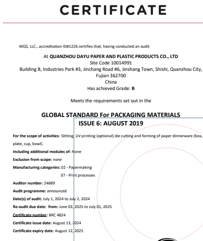 在創思維驗廠網老師專業技術、全程跟進耐心細致輔導以及公司全體員工配合下,一次性順利通過FSC認證、BRC認證、SEDEX-4p驗廠審核,為將來公司發展奠定了良好的發展基礎,既開拓了市場同時也增加了消費者對公司的信賴,在這里再次祝賀泉州大宇包裝制品有限公司2024年一次性成功通過FSC認證、BRC認證、SEDEX-4p驗廠審核,同時也期待未來再次與創思維驗廠網合作!