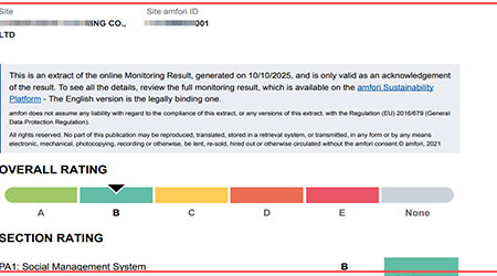 在創(chuàng)思維驗(yàn)廠網(wǎng)老師專業(yè)技術(shù)、全程跟進(jìn)耐心細(xì)致輔導(dǎo)以及公司全體員工配合下,一次性順利通過(guò)BSCI-B級(jí),為將來(lái)公司發(fā)展奠定了良好的發(fā)展基礎(chǔ),既開拓了市場(chǎng)同時(shí)也增加了消費(fèi)者對(duì)公司的信賴,在這里再次祝賀柬埔寨LISHUN BOYE CLOTHING CO.,LTD 2025年成功通過(guò)BSCI-B級(jí),同時(shí)也期待未來(lái)再次與創(chuàng)思維驗(yàn)廠網(wǎng)合作!