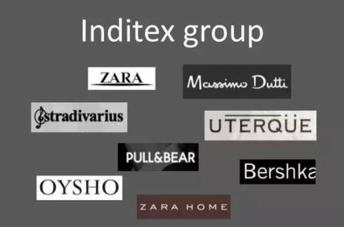 Inditex旗下?lián)碛衂ARA、Pull and Bear、Massimo Dutti、Bershka、Stradivarius、Oysho、Zara Home、Uterque、Zara Kids服裝品牌,ZARA是其中最成功的,被認為是歐洲最具研究價值的品牌之一。